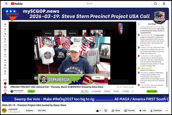 We focus on Precinct ReOrg and Saving South Carolina … but the great Steve Stern & Dan Schultz are the force behind Precinct ReOrganization NATIONWIDE!!!